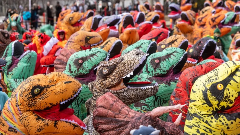 कैलगरी यूनिवर्सिटी ने शनिवार को टेलर फैमिली डिजिटल लाइब्रेरी के बाहर अलग-अलग डायनासोर के कपड़े पहने लोगों को इकट्ठा किया। गौरतलब है कि इस यूनिवर्सिटी की स्पोर्ट्स टीमों को डायनासोर के नाम से जाना जाता है।