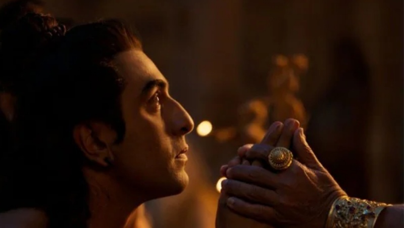 इसके बाद रणबीर कपूर को भगवान राम अपने राजमहल ले जाते हैं। अगले दृश्य में उन्हें एक राक्षस से लड़ते देखा जा सकता है। इसी क्रम में दृश्य बदलते जाते हैं और अगले ही पल वह पहाड़ में एक झरने के बीच हाथ जोड़े दिखाई देते हैं।